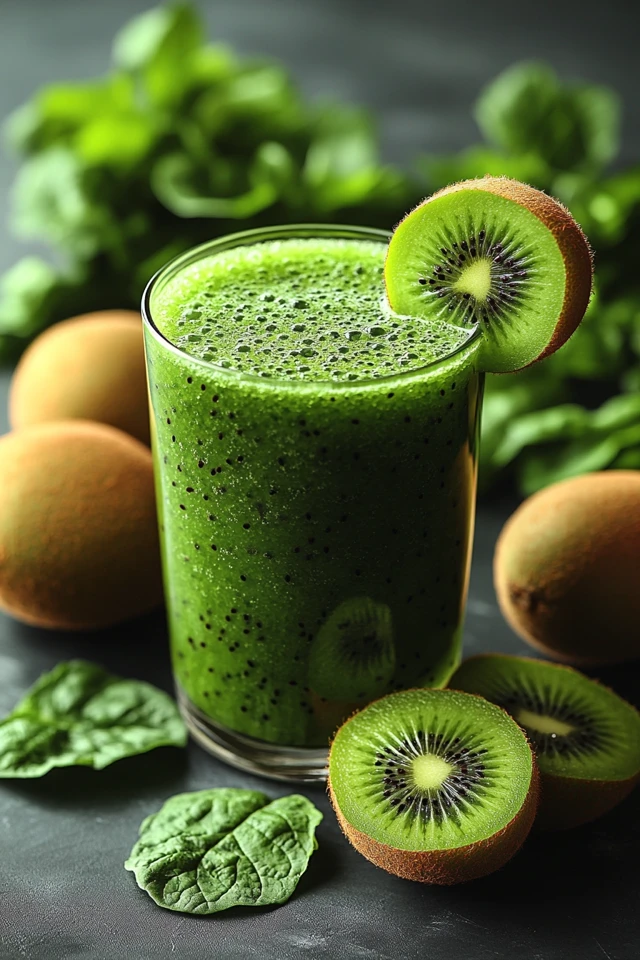 - Kiwi: Tart, tangy, and bursting with tropical flavor, kiwis are the star of this drink. They’re loaded with vitamin C, vitamin K, and antioxidants, as well as dietary fiber. Kiwis add a zesty edge that brightens the juice and makes it incredibly refreshing.