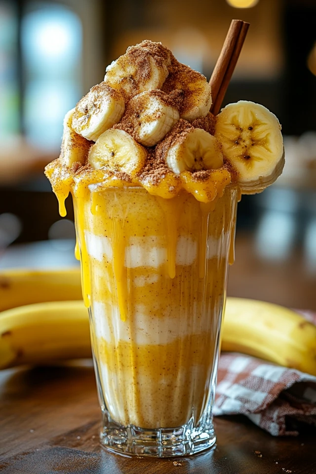 Not only does it taste like a treat, but it also provides lasting energy. With protein to keep you full, bananas for natural sweetness and potassium, and cinnamon to stabilize blood sugar levels, this shake is perfect for a busy morning or a post-workout pick-me-up. It’s like enjoying dessert while secretly fueling your body with goodness.