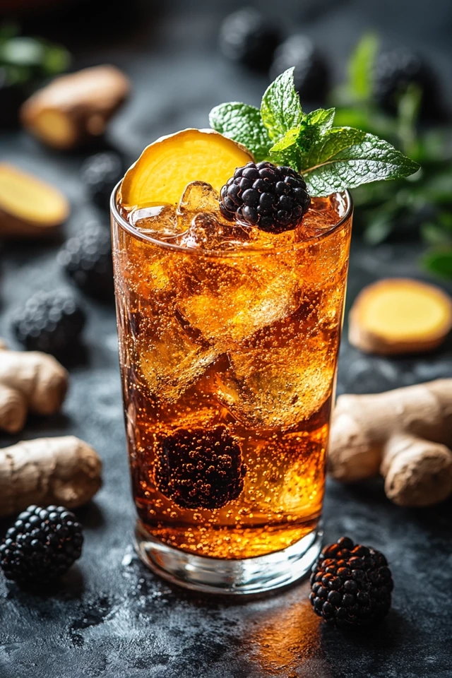 - Blackberry Ginger Smash: Muddle fresh blackberries and mint leaves in the glass before adding the other ingredients for a mojito-inspired twist.