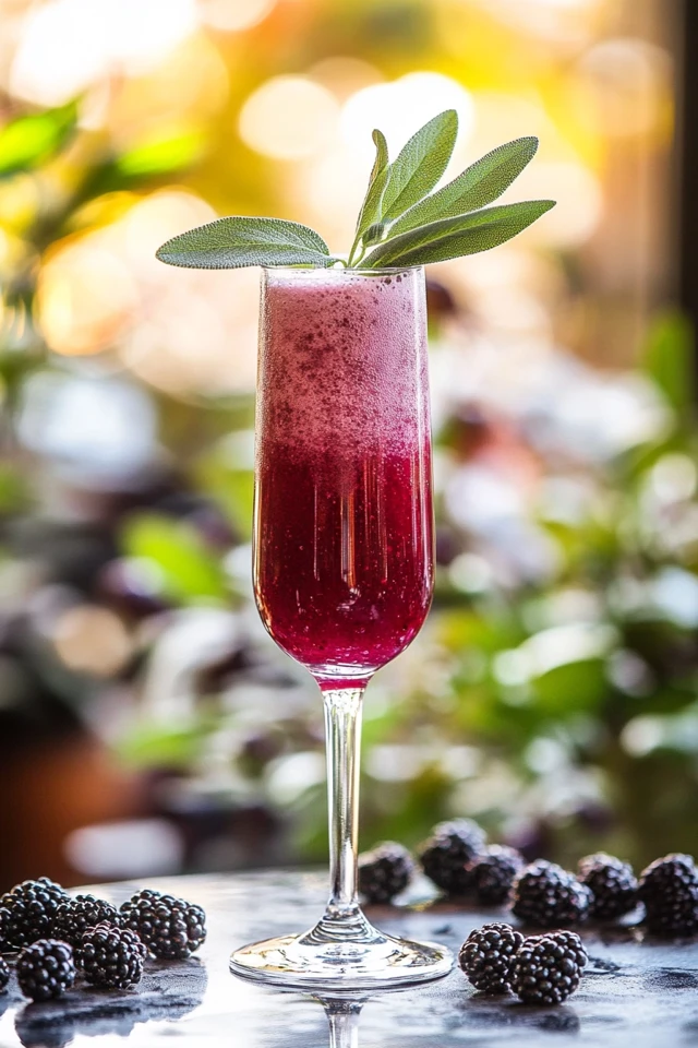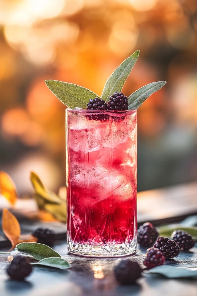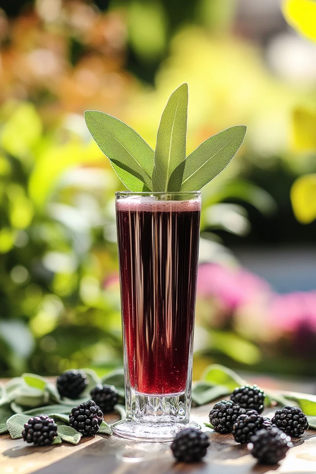 - Garnish with a skewer of fresh blackberries and a sprig of sage for a beautiful presentation. Enjoy immediately!