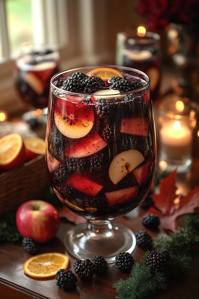 Picture this: You’re hosting a summer picnic, and a pitcher of blackberry sangria is sitting on the table, filled with floating blackberries, orange slices, and sprigs of mint. Your guests can’t help but admire its beauty before diving in for a refreshing sip. Or imagine serving this punch at a holiday dinner—it’s the perfect seasonal alternative to heavier winter cocktails, offering a light, fruity contrast to rich dishes.