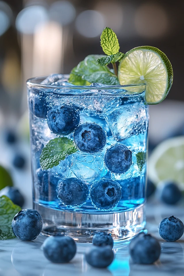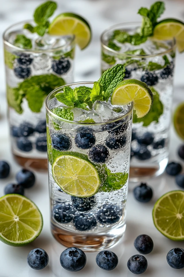 Now imagine serving this drink at a brunch or party. A clear pitcher filled with deep blue blueberries, vibrant green lime slices, and fresh mint sprigs is not just a drink—it’s a showstopper. Guests pour themselves a glass, drawn to its beautiful appearance and even more to its crisp, revitalizing taste.