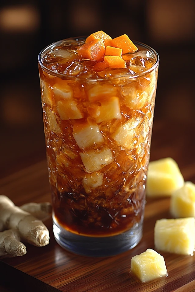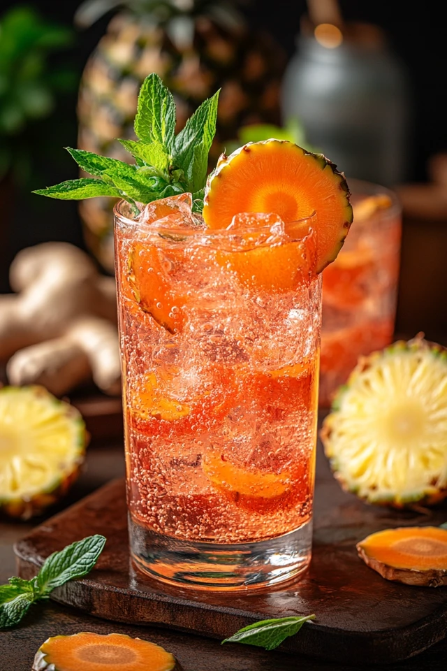 Now picture serving this drink at a brunch or dinner party. A pitcher filled with vibrant orange carrot slices, golden pineapple chunks, and pale ginger rounds is more than just a drink—it’s a show-stopping centerpiece. Guests are drawn to its beautiful presentation and even more to its unique and refreshing flavor.
