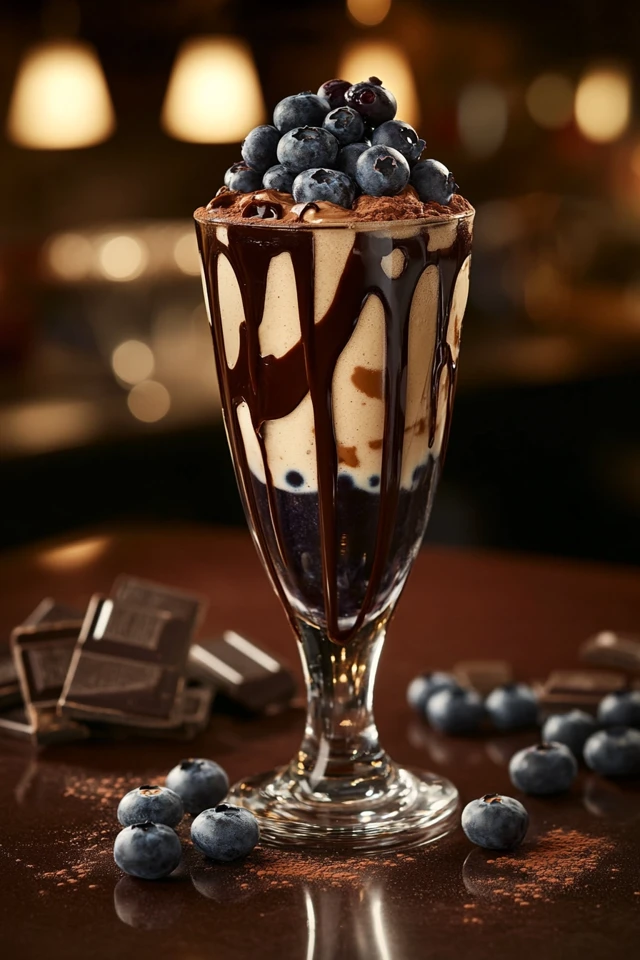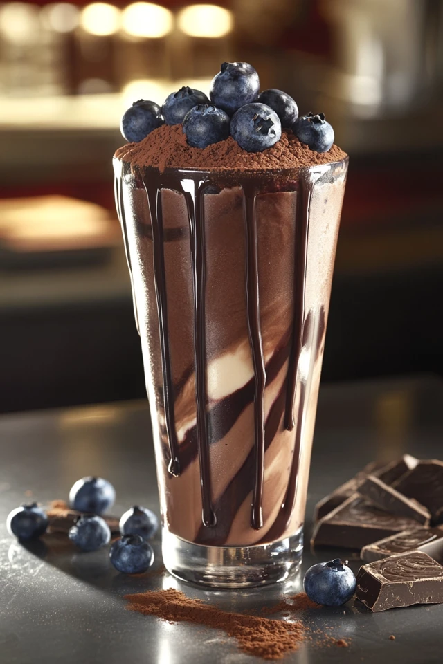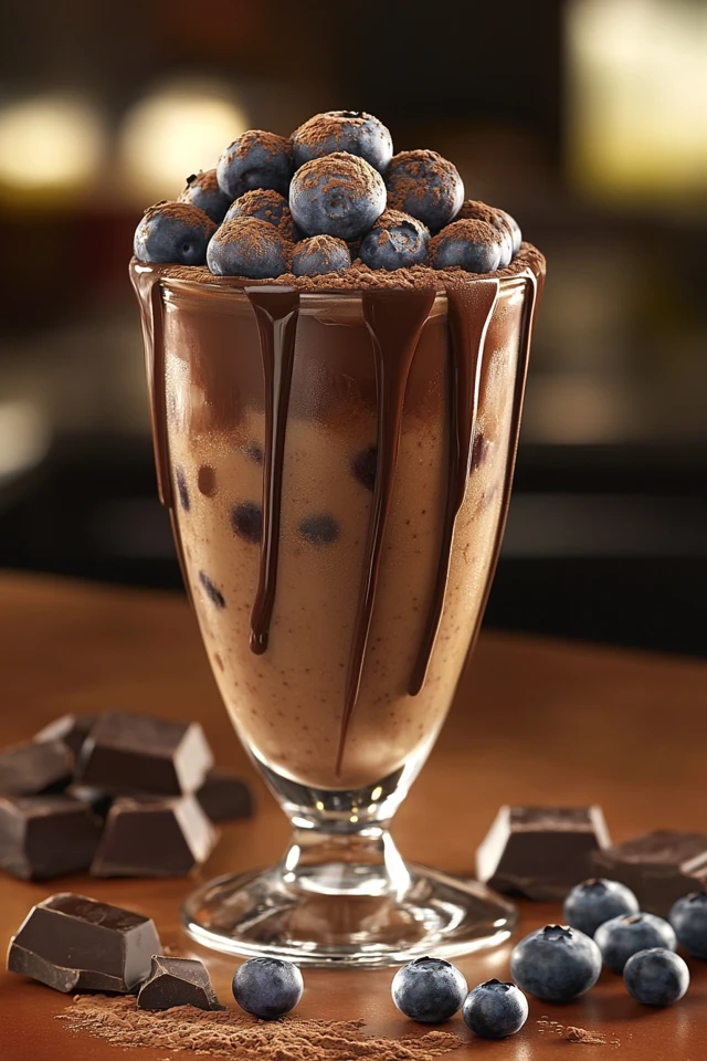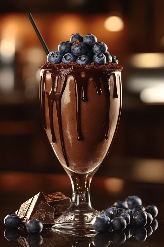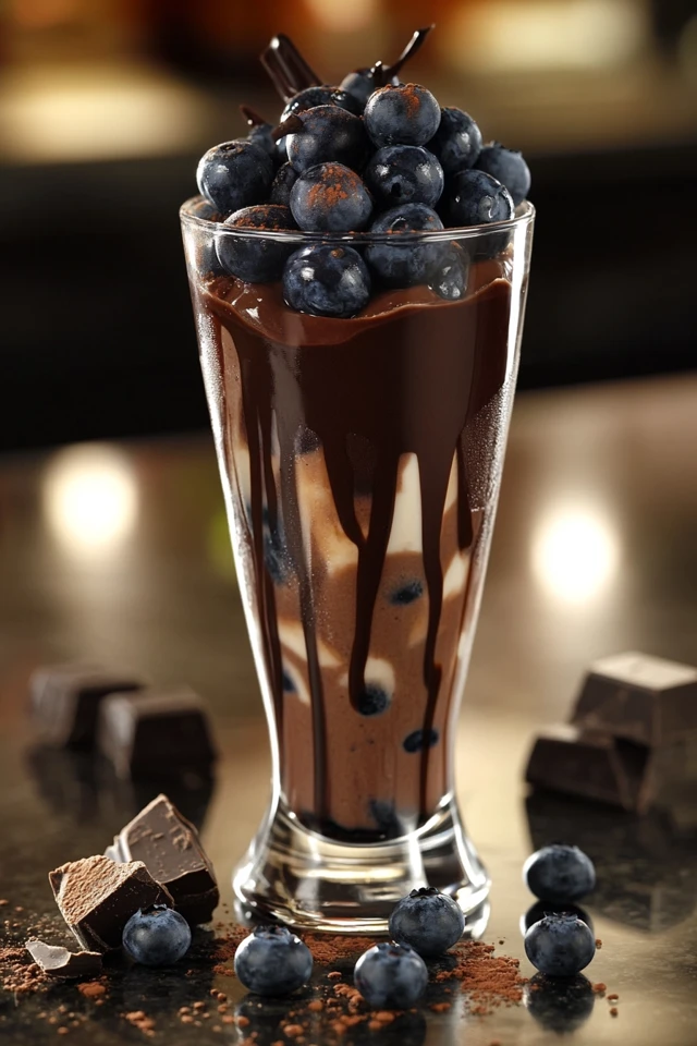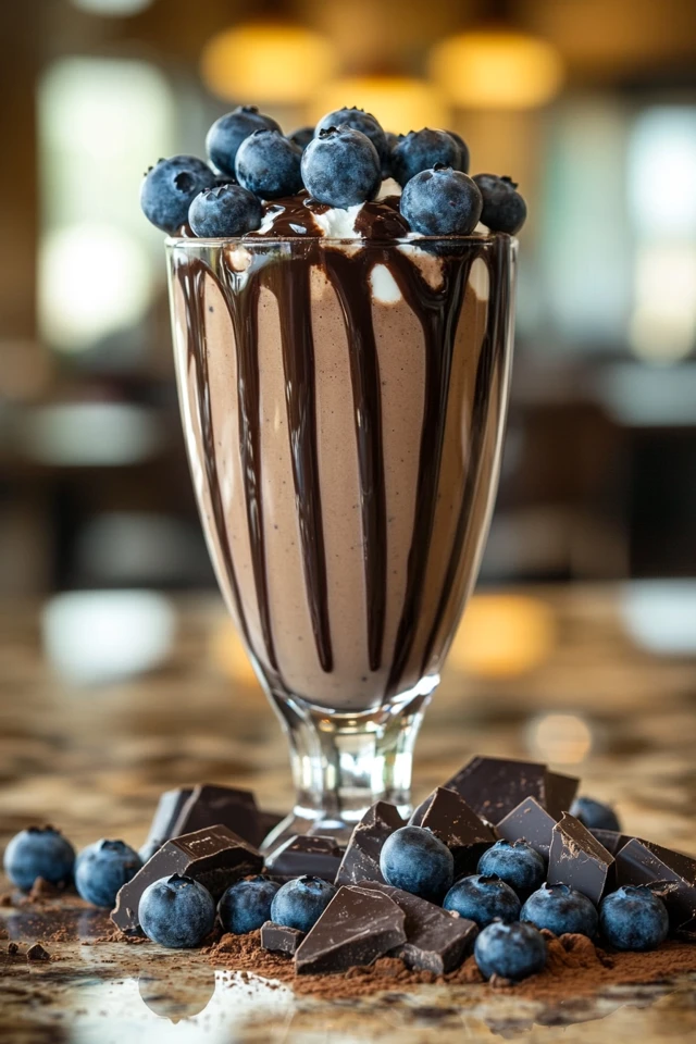- Garnish: fresh blueberries, a sprinkle of cocoa powder, or chocolate shavings
