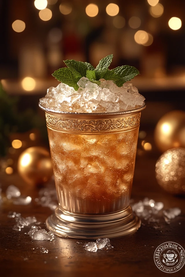 Top with a fresh mint sprig for garnish. Optionally, dust the mint with powdered sugar for a touch of elegance. Serve immediately with a straw or a julep spoon.