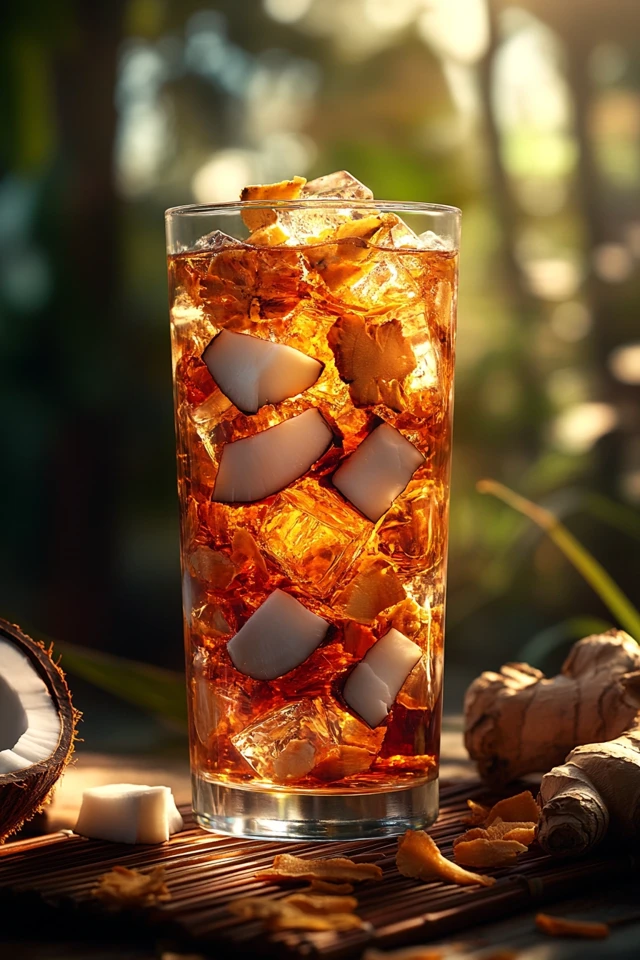 Now imagine serving this drink at a dinner party or brunch. A pitcher filled with slices of fresh coconut and thin rounds of ginger is not just a beverage—it’s a conversation starter. Guests marvel at its unique flavor combination and its refreshing, slightly exotic taste.