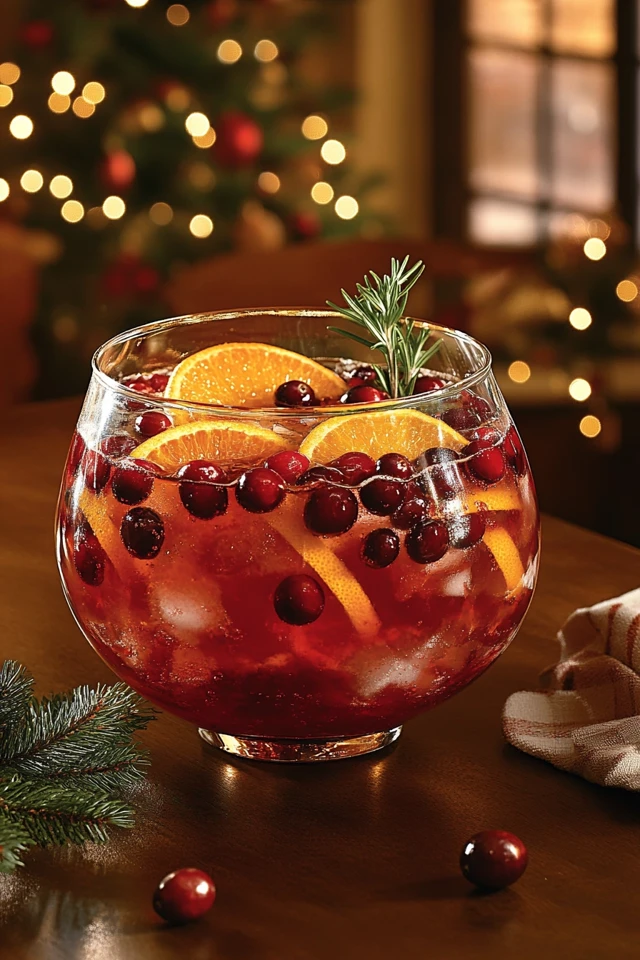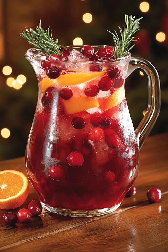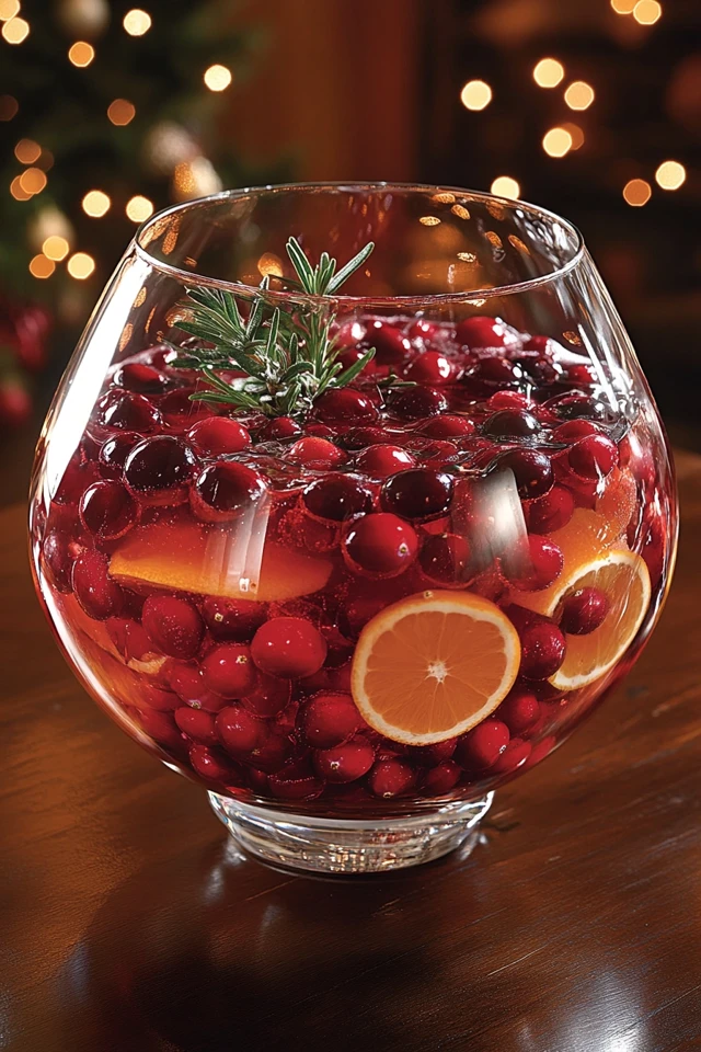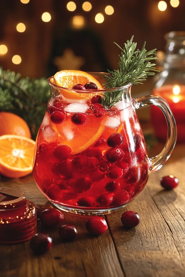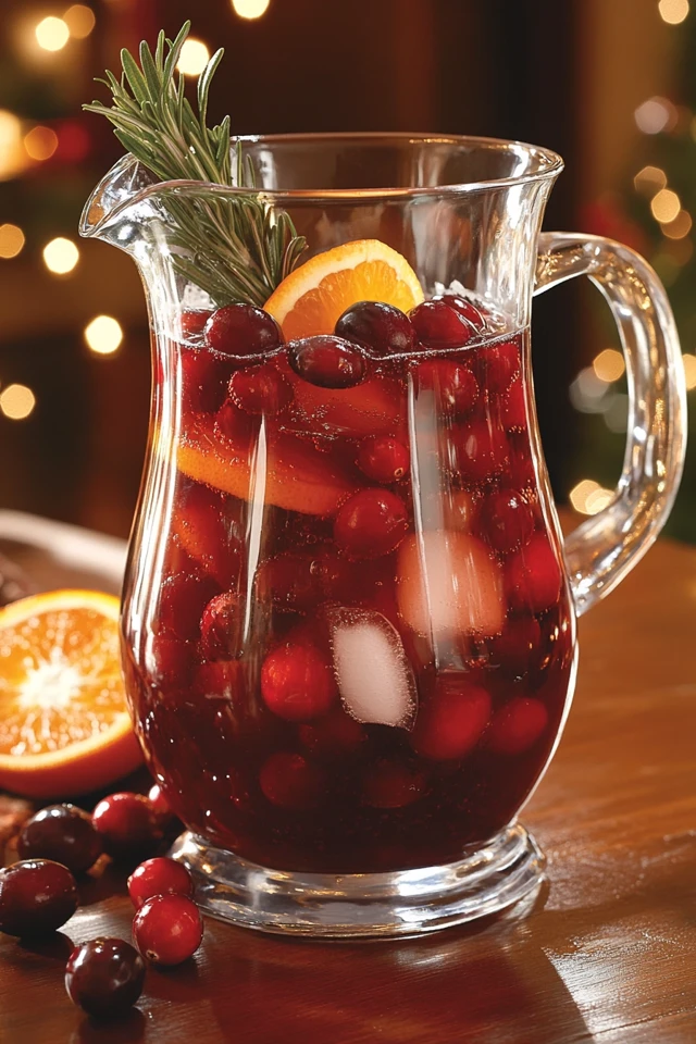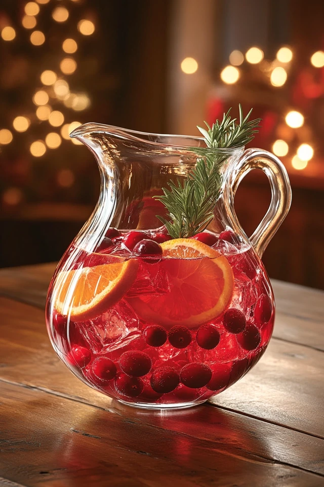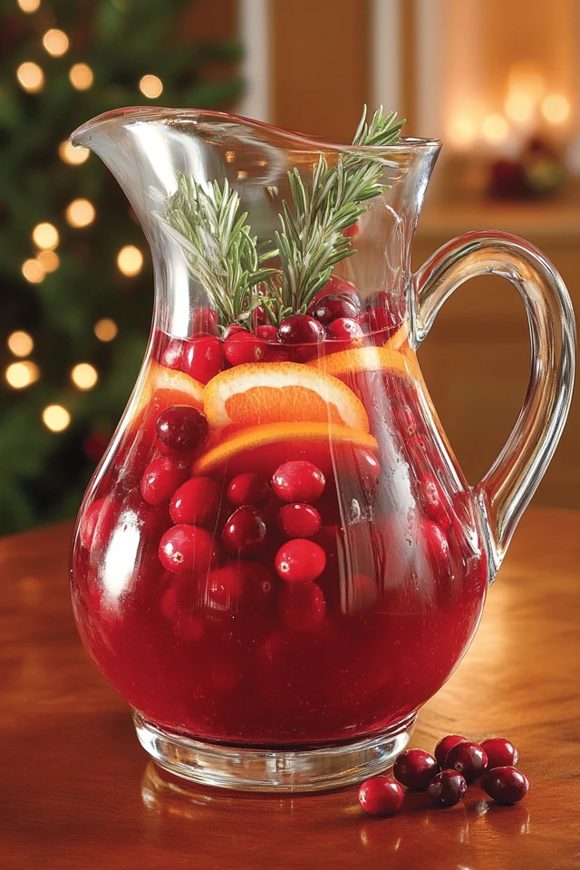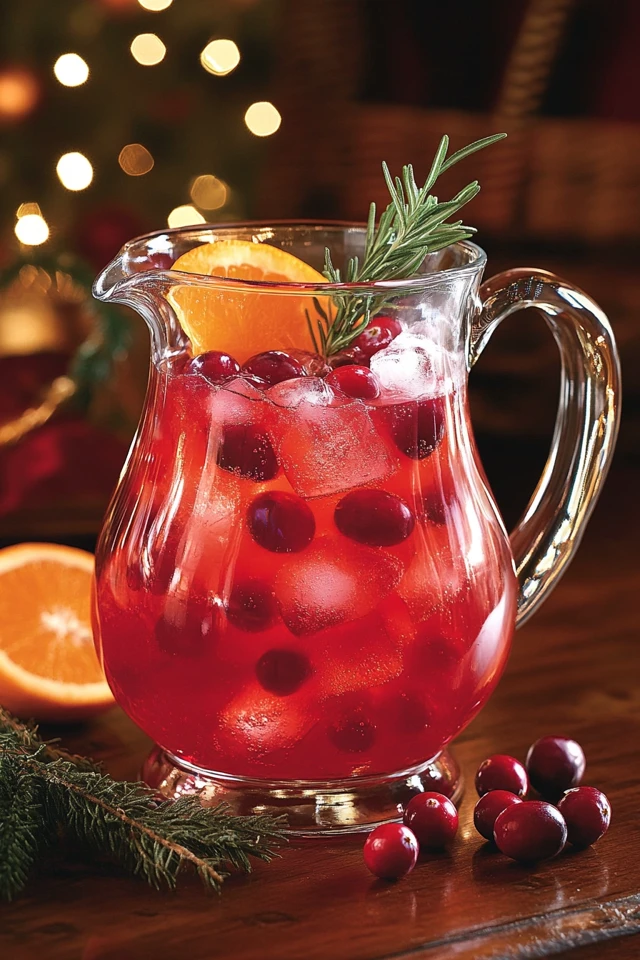 - Serve: Add fresh cranberries, orange slices, and mint leaves for garnish. Serve chilled in glasses with ice or as a chilled punch for guests to serve themselves.