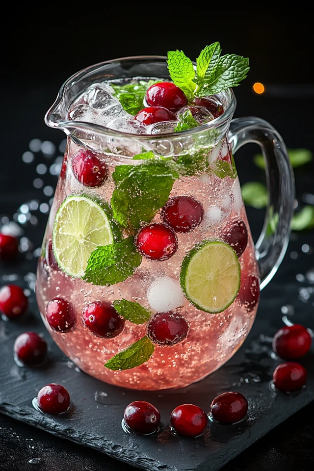 A: You can prepare the cranberry juice, lime juice, and mint mixture up to 24 hours in advance. Add the sparkling water and ice just before serving to keep it fresh and fizzy.