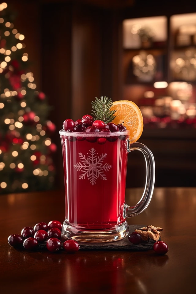 - Serve over ice, garnished with fresh orange slices and cranberries.