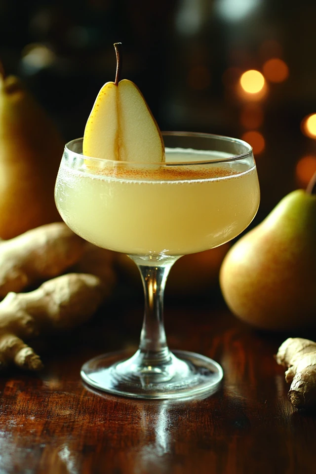 Float a thin slice of pear on top, add a twist of lemon peel, or place a piece of candied ginger on the rim. Serve immediately and enjoy!