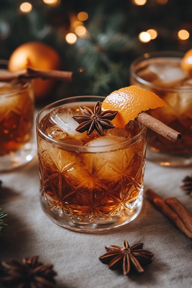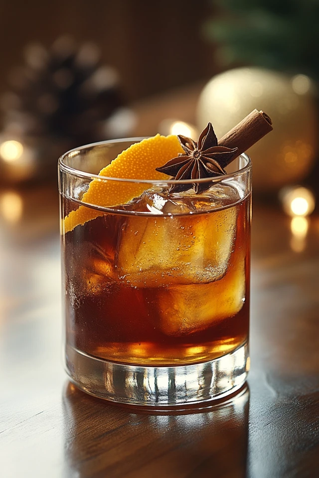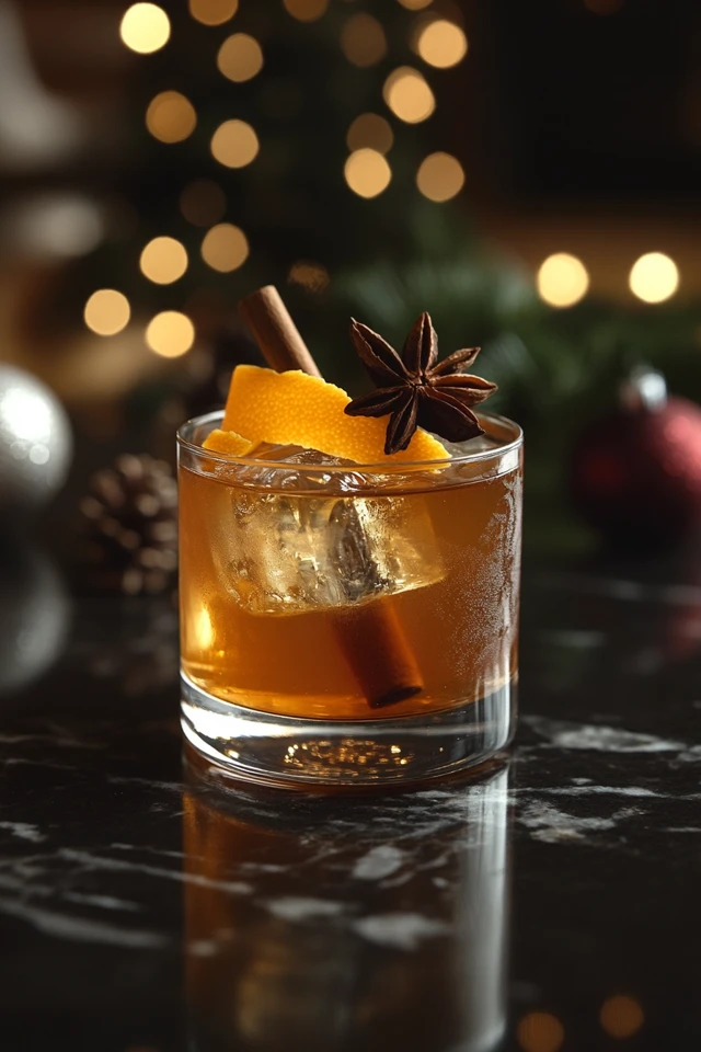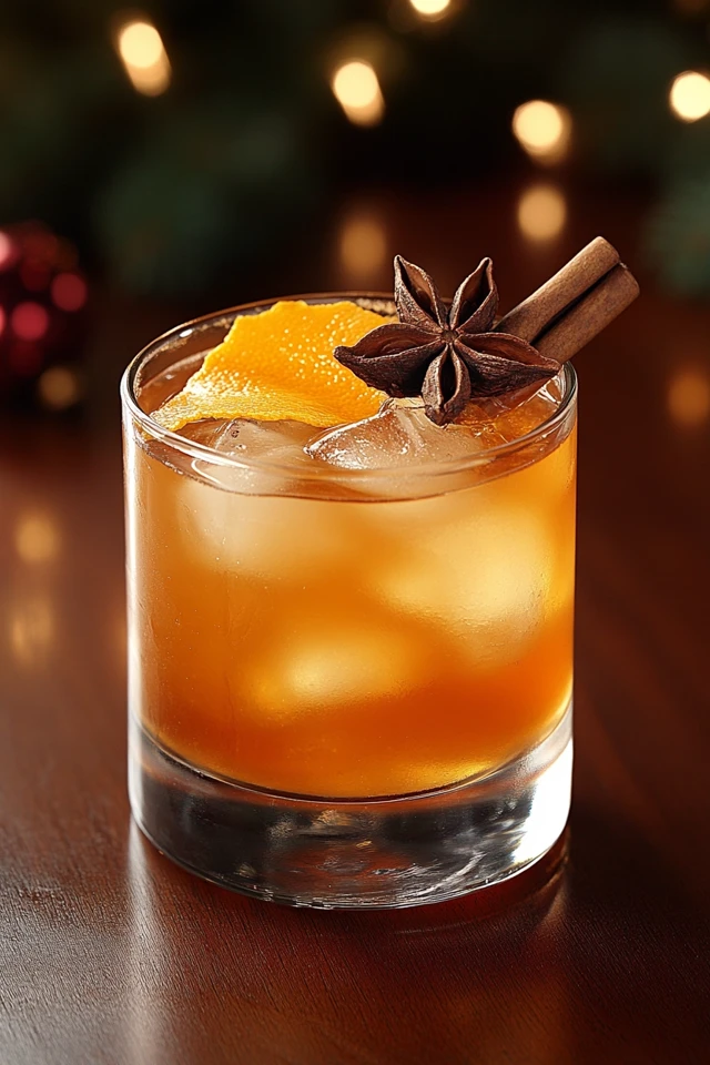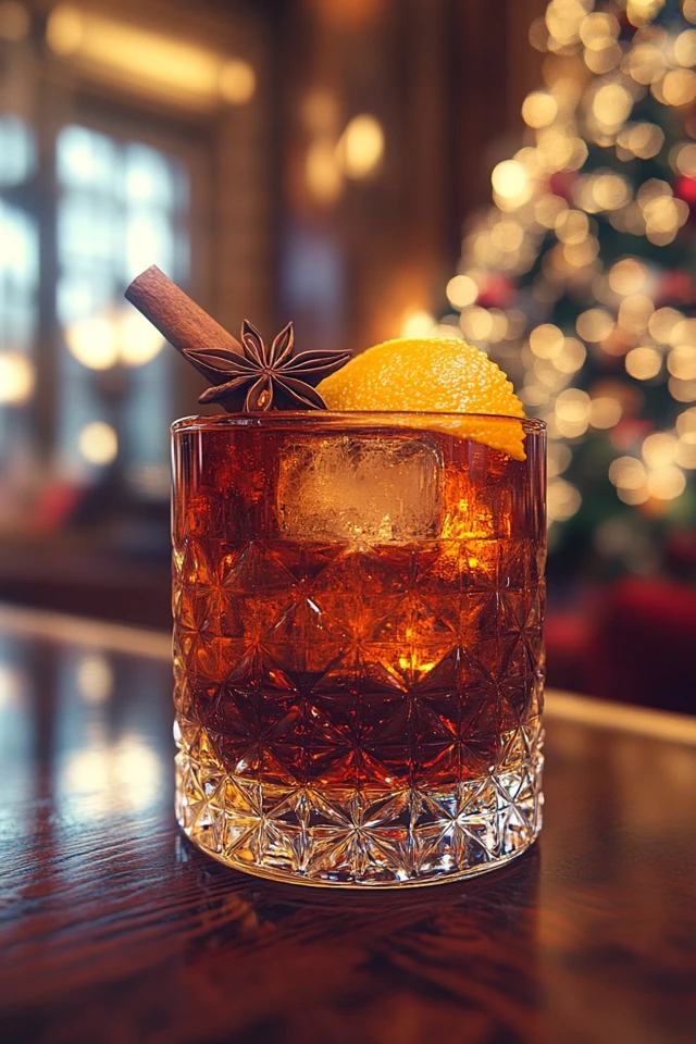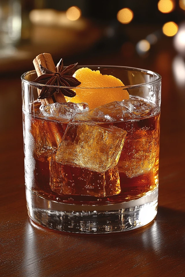 - Garnish & Serve – Express an orange peel over the drink (squeezing the peel to release oils), then drop it in. Add a cinnamon stick for an extra festive touch.