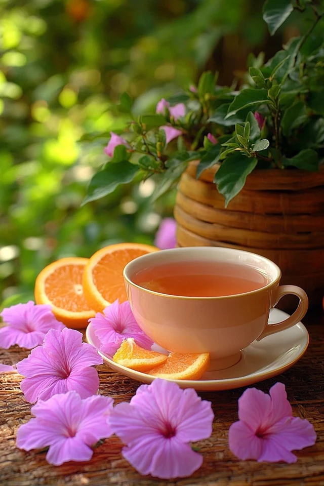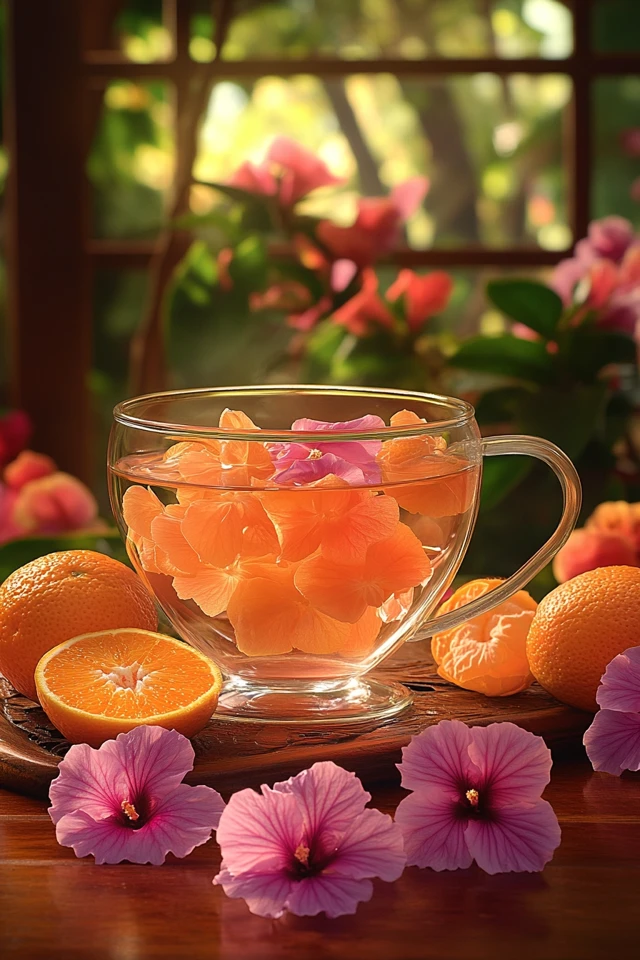 So grab your hibiscus petals and fresh oranges, brew up this delightful tea, and enjoy the perfect balance of tangy and sweet. Cheers to bold flavors, vibrant colors, and a refreshing cup of tea! 🍊🌺☕✨