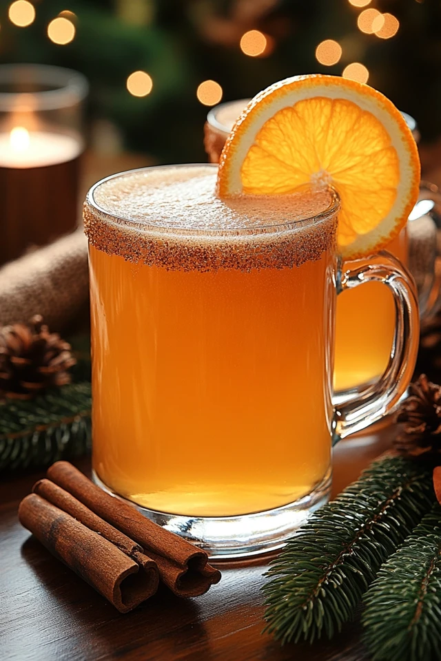 The combination of apple cider and warm spices creates a comforting, fragrant drink perfect for cooler weather.