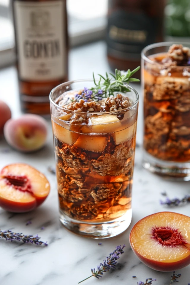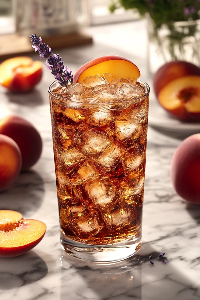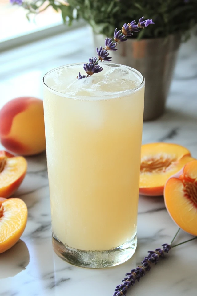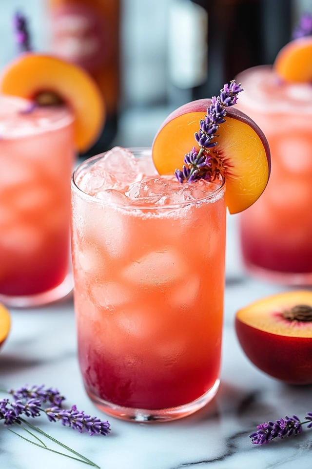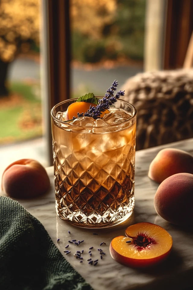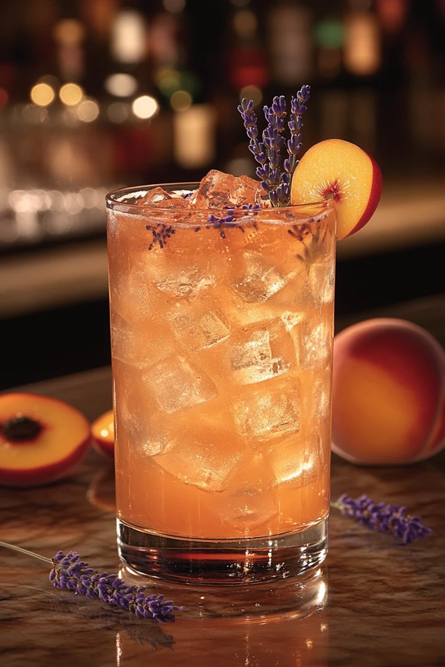 - Garnishes: Fresh lavender sprig, peach slice, and lemon wheel