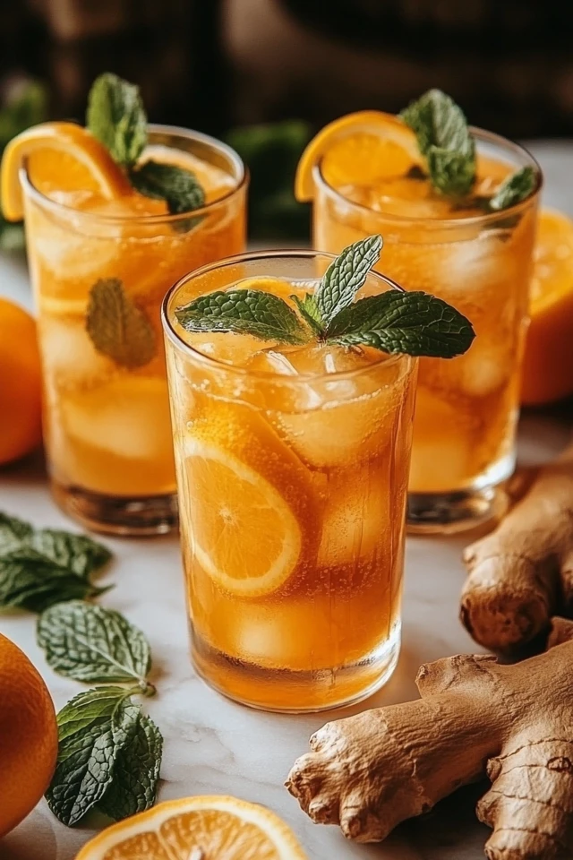 Now imagine serving this drink at a dinner party. A pitcher filled with bright yellow lemon slices, fresh green mint leaves, and thin ginger rounds isn’t just a drink—it’s a centerpiece. Guests pour themselves a glass and marvel at its bold flavors and elegant presentation.