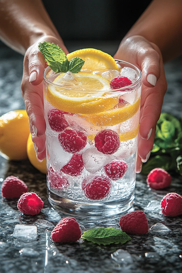 Now picture serving this drink at a brunch or garden party. A clear glass pitcher filled with vibrant yellow lemon slices, bright red raspberries, and fresh green mint leaves is not just a drink—it’s a centerpiece. Guests pour themselves a glass and marvel at how something so simple can taste so good.