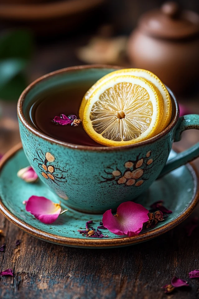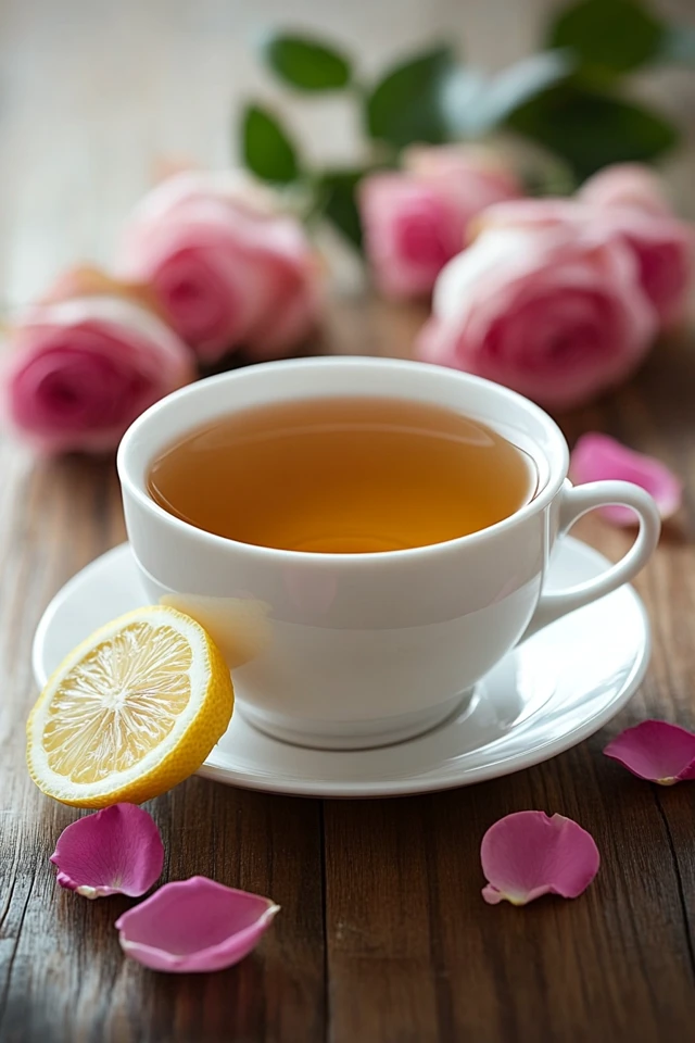 Start your day with a warm cup of Lemon Rose Tea to awaken your senses and set a calming tone.