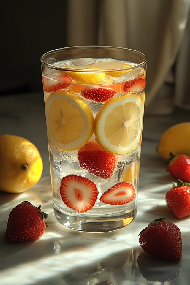 - Serve: Pour the infused water into glasses over ice cubes. Garnish with a fresh strawberry or lemon slice for a touch of elegance.