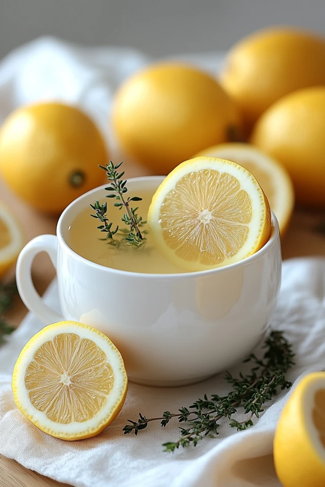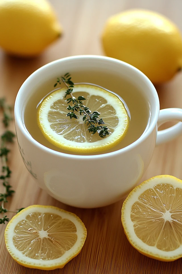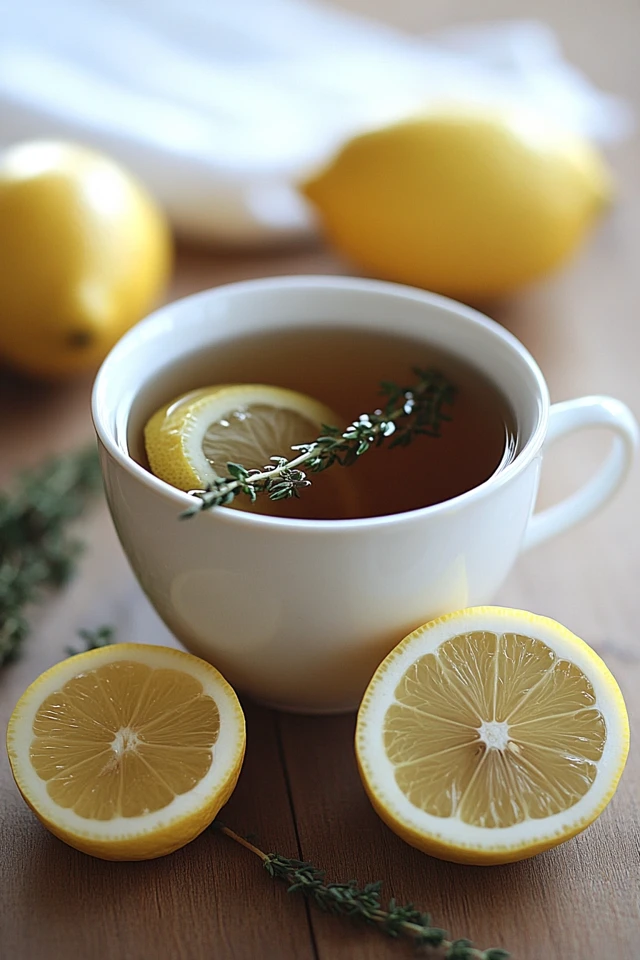 The combination of bright lemon and earthy thyme creates a beautifully balanced and healthful drink.