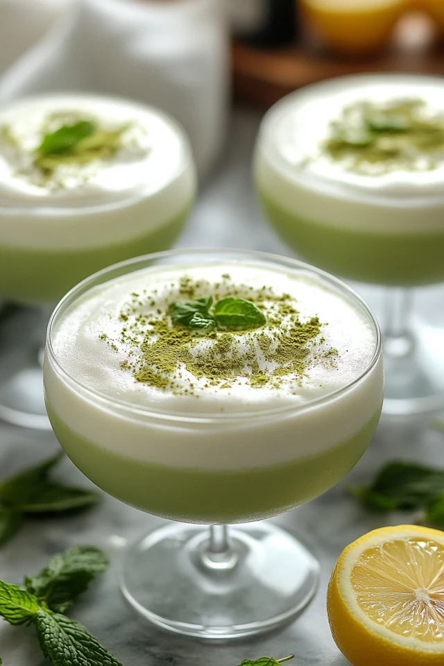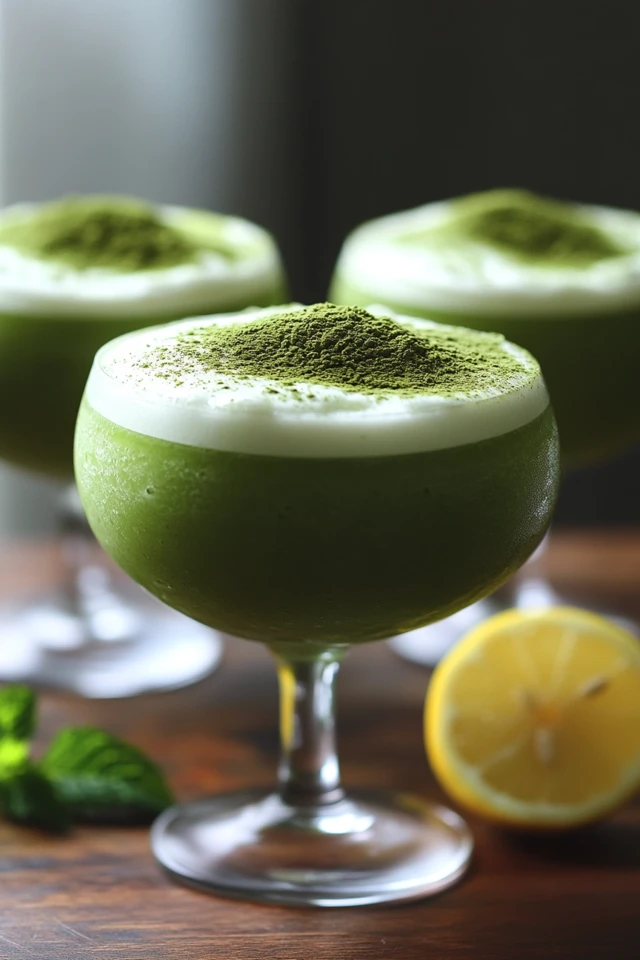 Lightly dust the top with matcha powder or garnish with a lemon wheel. For an extra elegant touch, use an edible flower.