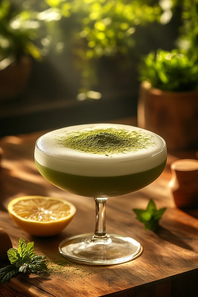 The combination of earthy matcha, herbal gin, and tangy citrus is nothing short of delightful. It’s a bold yet balanced flavor experience that feels both comforting and exciting.