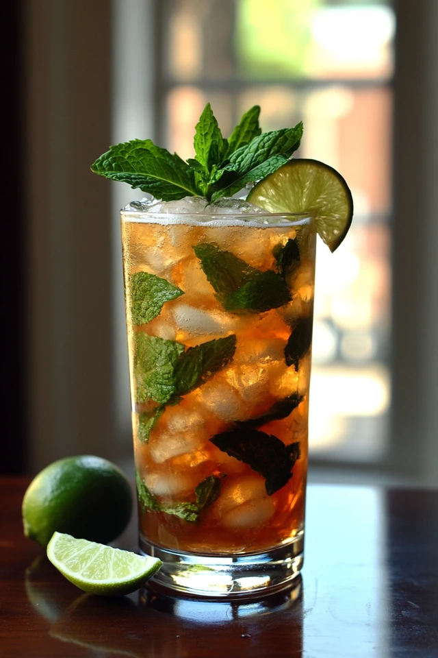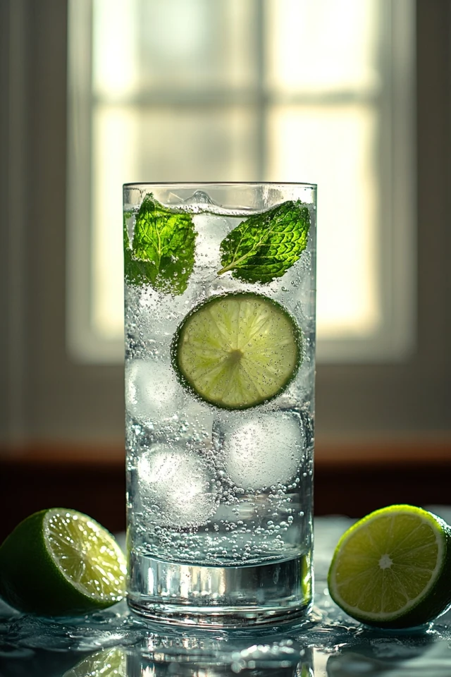 The fresh mint and lime make it a cool, invigorating drink perfect for warm days.