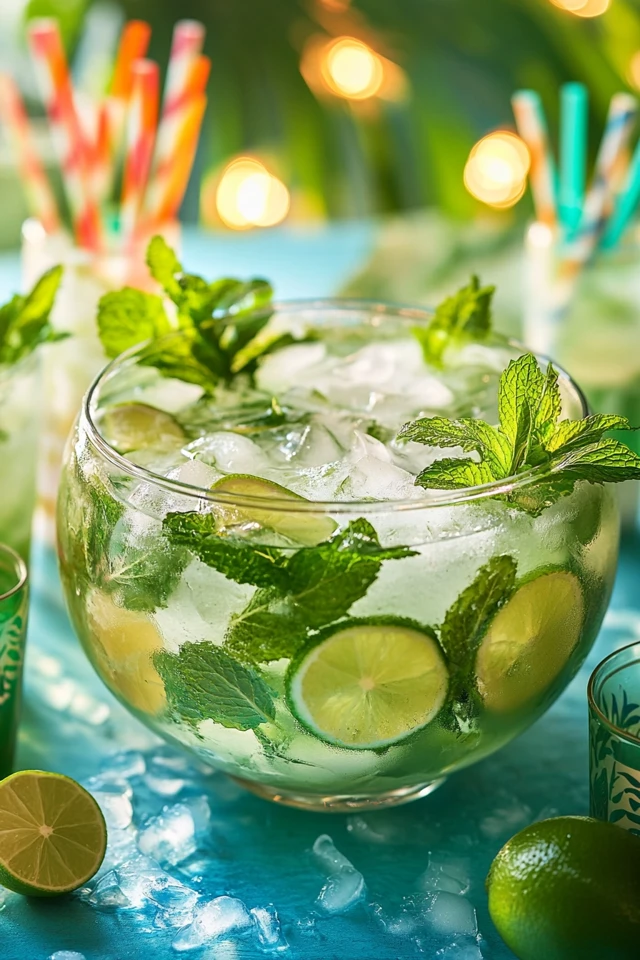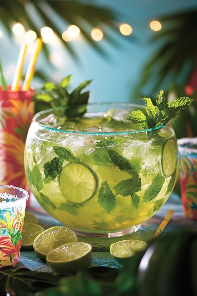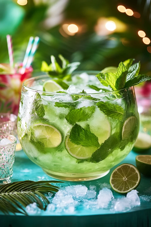 - Birthday Parties and Celebrations: If you’re hosting a birthday bash, a Mojito Party Punch is the perfect drink to serve. It’s fun, festive, and has a bit of a kick thanks to the rum. Plus, the combination of mint and lime is always a hit with guests of all ages (just adjust the rum to make it a non-alcoholic version for younger guests or non-drinkers).