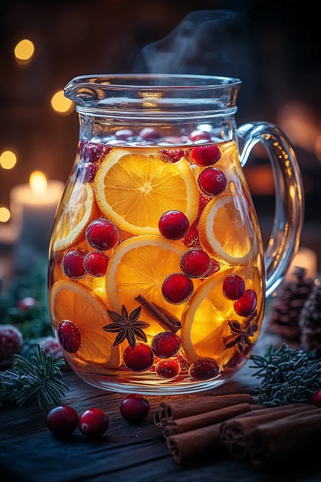 I first made this punch for a family Christmas gathering a few years ago. My goal was to create something warm and festive, yet not overly boozy, so that everyone—from the kids to the adults—could enjoy a mug of holiday cheer. I combined fresh cranberries, orange slices, cinnamon sticks, cloves, and a hint of honey, then let it all simmer slowly on the stove. As the punch warmed up, the fragrance of spices filled the house, and within minutes, family members started gathering around the kitchen, eagerly waiting for the first ladle to be poured.