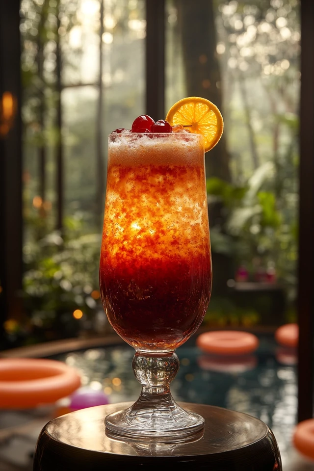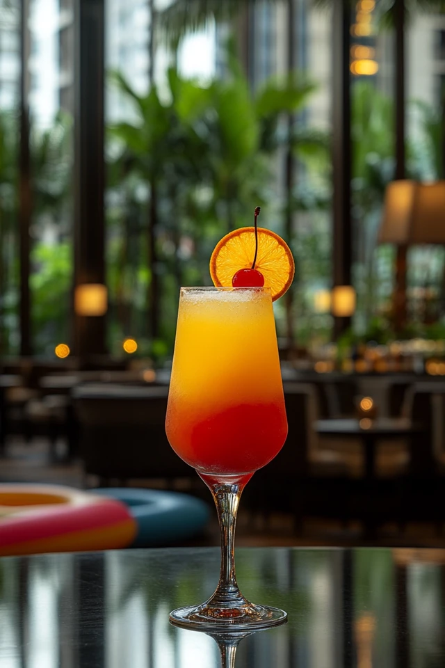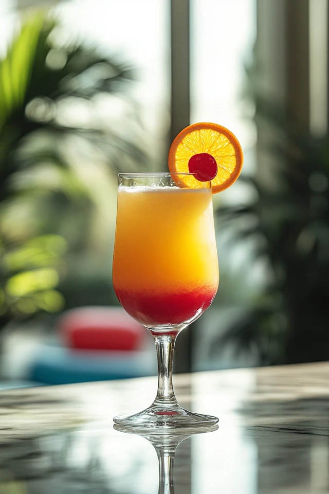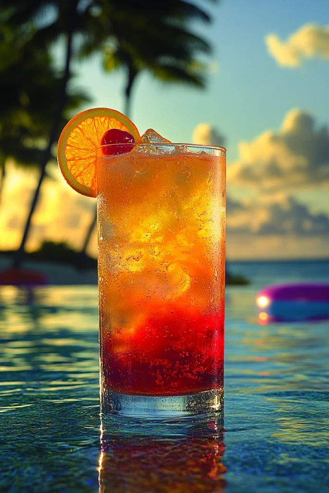 - Garnish & Serve – Add an orange slice and a cherry for a tropical finishing touch. Enjoy immediately!
