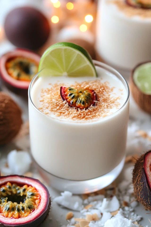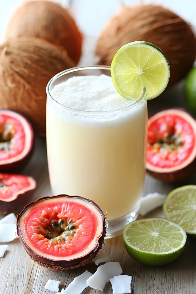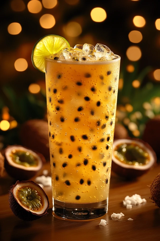 - Play with Presentation: Serve in clear glasses to showcase the drink’s vibrant color, and garnish with passionfruit halves or toasted coconut for a tropical flair.