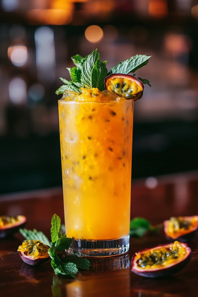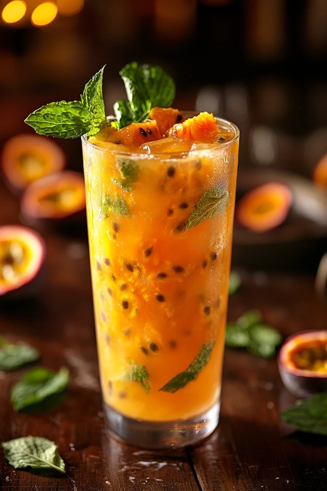 Passionfruit is the star of this drink. With its bold, tangy flavor, it brings an explosion of tropical sweetness with a little bit of tartness that immediately refreshes you. But it’s not just about the flavor—passionfruit is packed with health benefits. It’s rich in vitamin C, antioxidants, and fiber, making it great for your immune system and digestive health. The tangy kick from the passionfruit juice pairs beautifully with the cooling properties of mint, creating a flavor profile that’s both bold and refreshing.