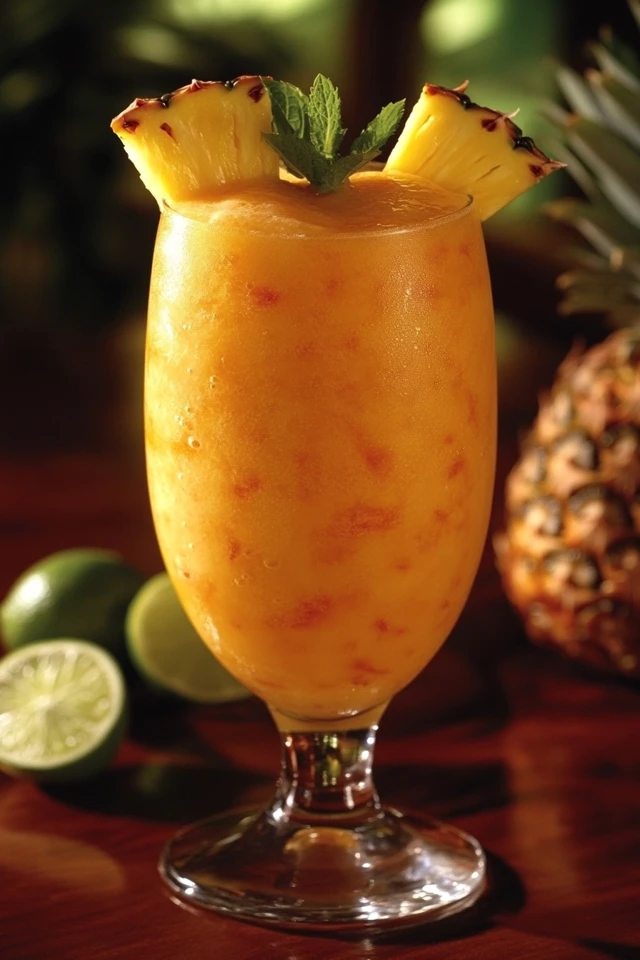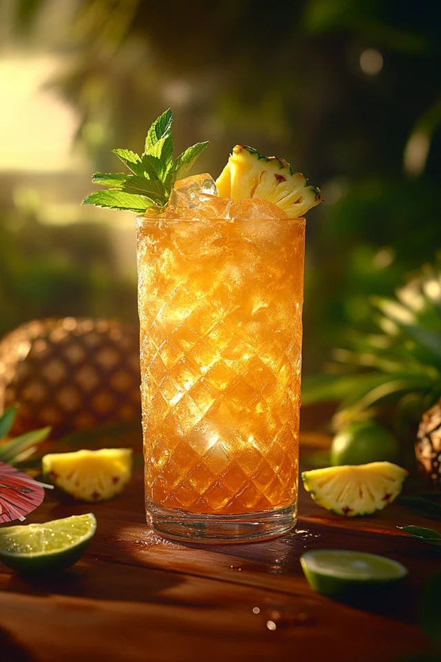 - Garnish: Add a pineapple wedge, lime wheel, and mint sprig for a festive touch. Don’t forget the cocktail umbrella for that ultimate tiki vibe!