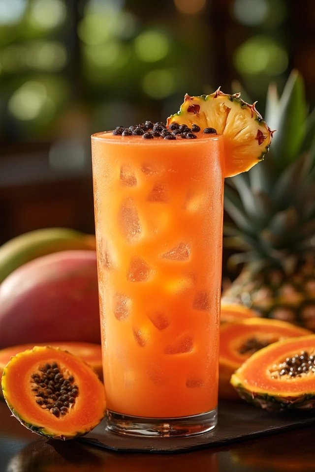 Imagine sipping on a tropical getaway in a glass—sunshine, breezes, and exotic flavors all rolled into one drink. That’s exactly what pineapple papaya juice delivers. With its vibrant color and naturally sweet taste, this tropical fusion feels like a warm embrace for your taste buds. It’s a drink that transports you to a beachside paradise, no matter where you are.