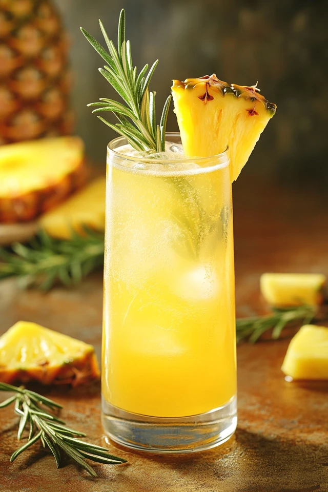 - Garnish and Serve: Garnish with a fresh rosemary sprig, a lemon wedge, or a pineapple chunk for a festive touch. Serve immediately and enjoy your tropical-herbal masterpiece!