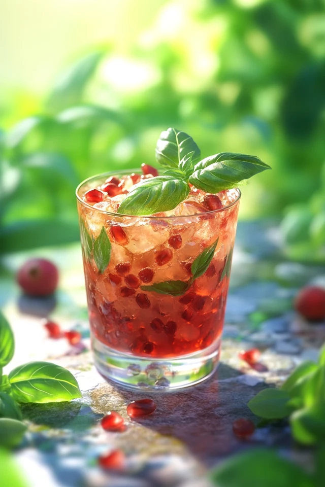 - Garnish and Enjoy: Garnish with a sprig of fresh basil and a few pomegranate seeds for a pop of color. Serve immediately and savor the refreshing, herbal flavors.