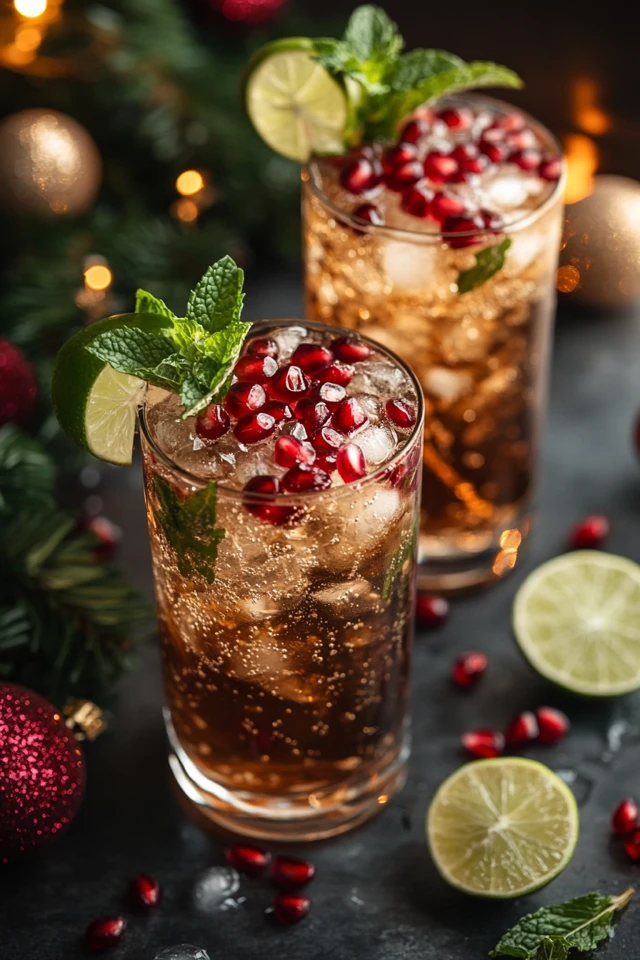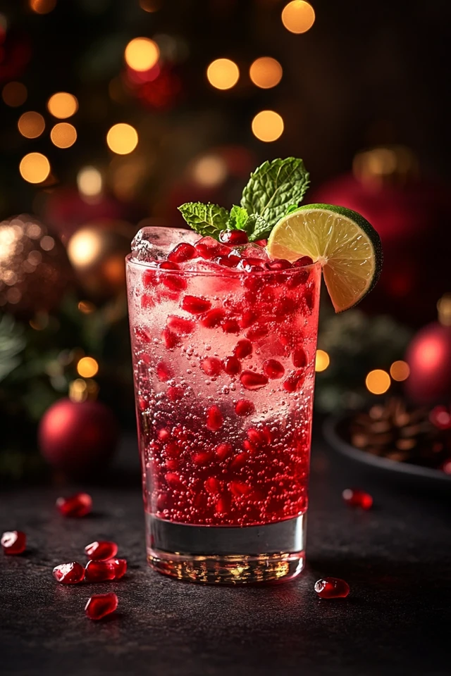Ginger ale provides a gentle spiciness and effervescence, which complements the tartness of the pomegranate. The warmth of ginger makes this drink feel more seasonal, giving it that signature holiday touch.