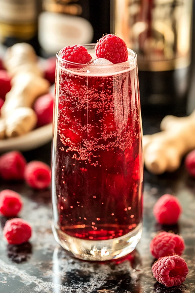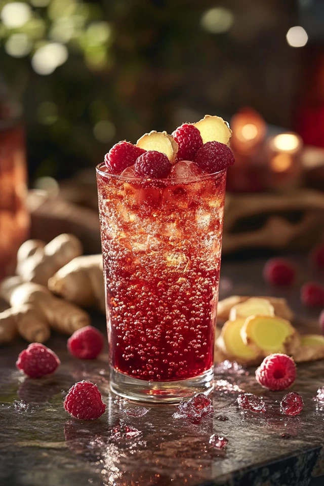 - Sparkling Water: Crisp and effervescent, sparkling water adds a bubbly touch that lightens the bold flavors of the raspberries and ginger. It makes the drink feel celebratory while keeping it refreshing and hydrating.