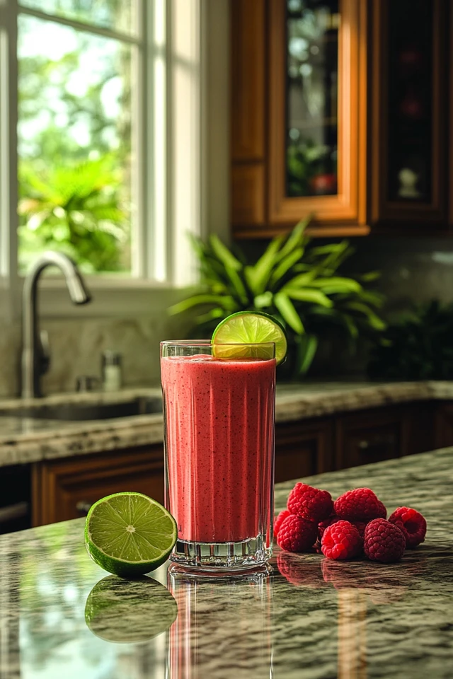 Whether you’re starting your day, recovering after a workout, or simply indulging in a healthy treat, this shake is guaranteed to brighten your mood and satisfy your cravings. So grab your blender, raspberries, and lime, and whip up this tangy, sweet, and creamy delight. Cheers to tropical vibes and vibrant health!