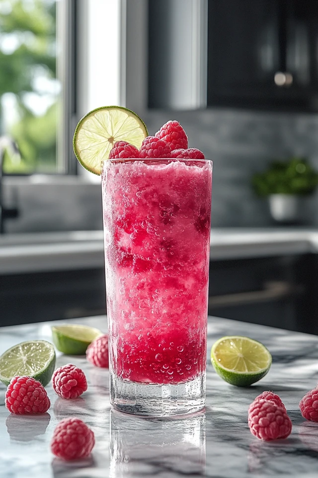 - Prepare the Ingredients: Juice and zest the lime. If using fresh raspberries, rinse them and pat them dry.
