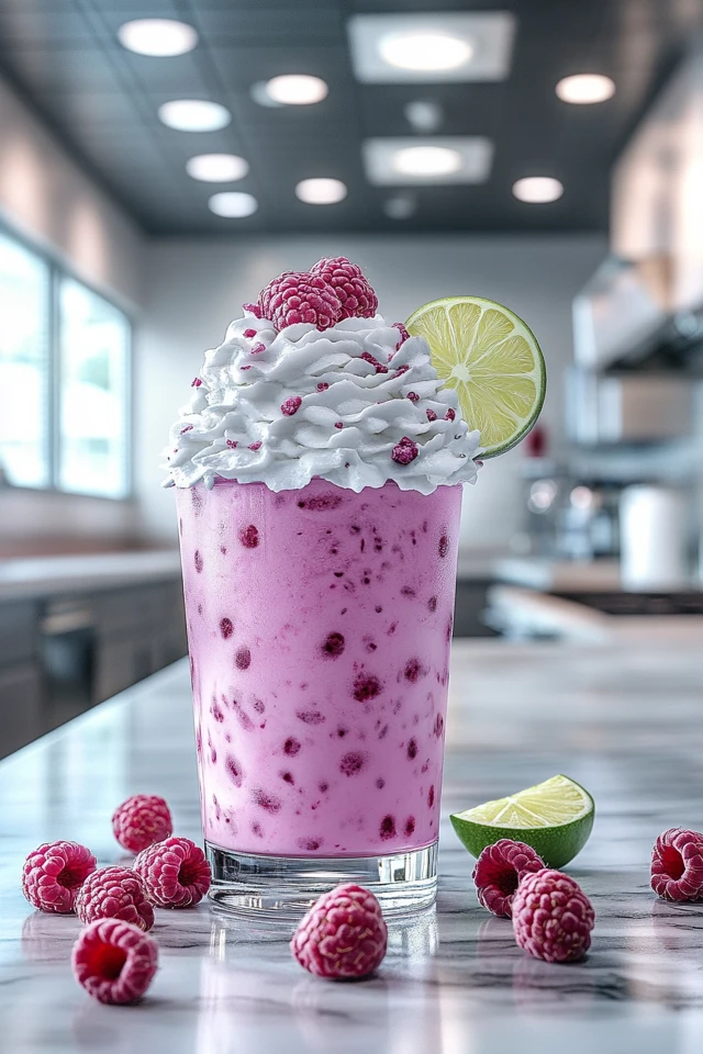 - Serve and Garnish: Pour the shake into a glass and garnish with fresh raspberries, lime zest, or shredded coconut for a decorative touch. Serve immediately and enjoy!