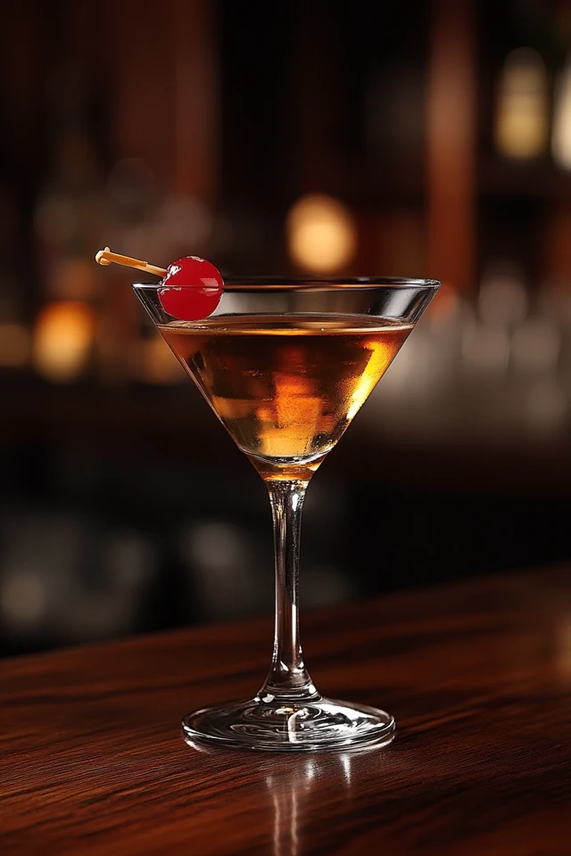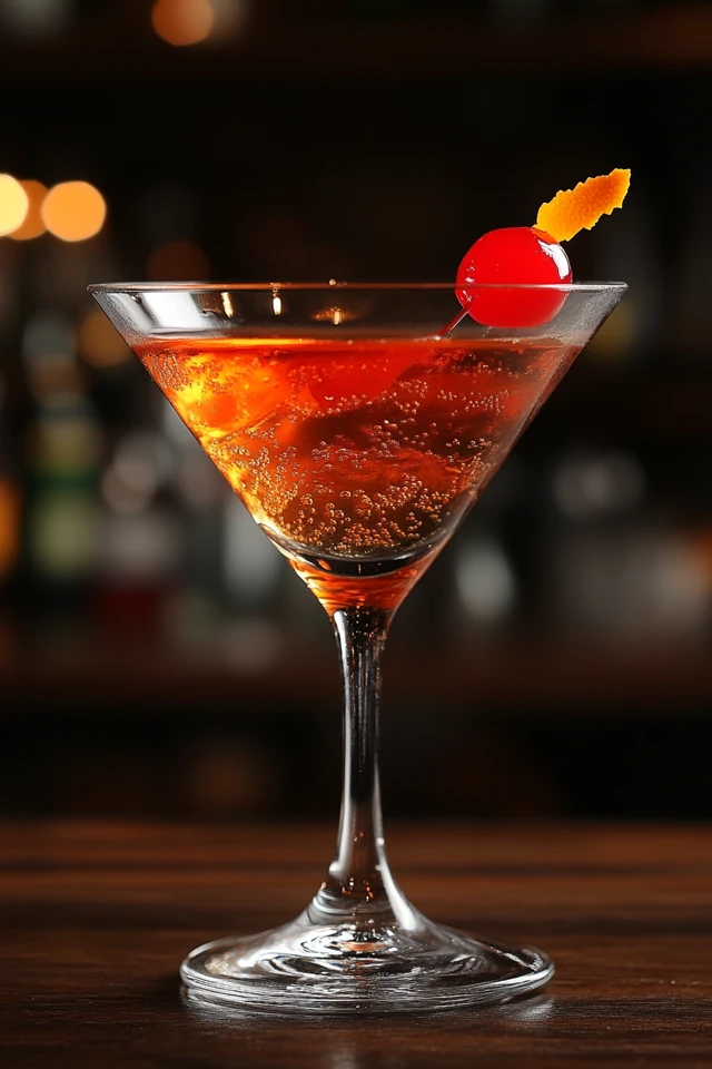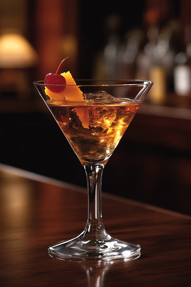 The Scotch whisky brings a distinctive smoky depth that sets it apart from the traditional Manhattan.