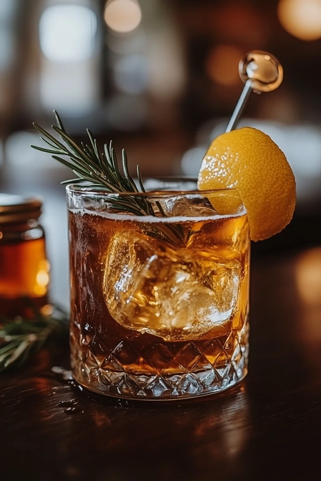 This cocktail is herbal, warm, and wonderfully balanced. The whiskey provides a rich, smoky base, while the honey syrup adds just the right touch of sweetness. The rosemary, though subtle, brings a fragrant, woodsy depth that feels like autumn in a glass. It’s the perfect drink for cozy evenings, whether you’re gathered around a fire or enjoying a quiet moment at home.