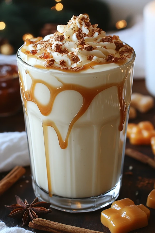 - Top with whipped cream, a drizzle of caramel, and a sprinkle of cinnamon.