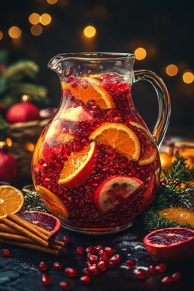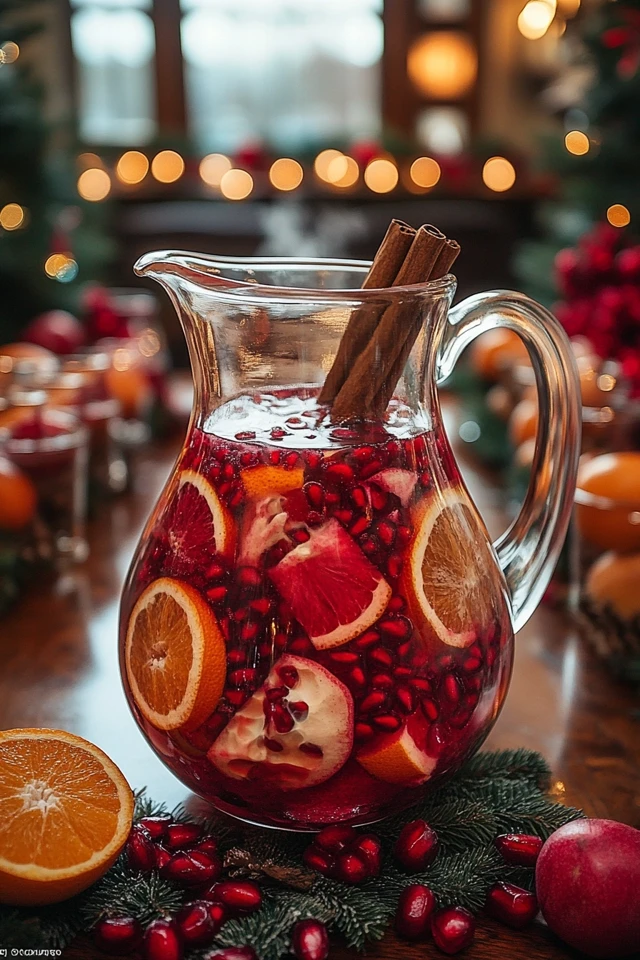 - Make It Pretty: Garnish generously with pomegranate seeds, orange slices, and cinnamon sticks for a festive presentation.