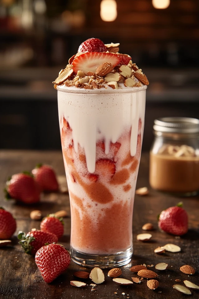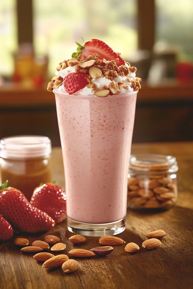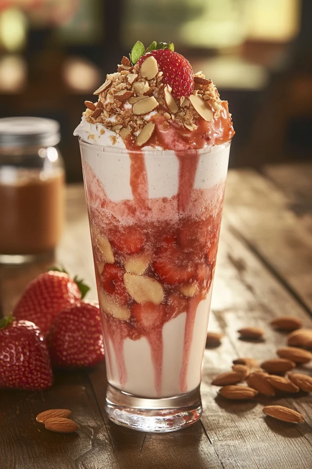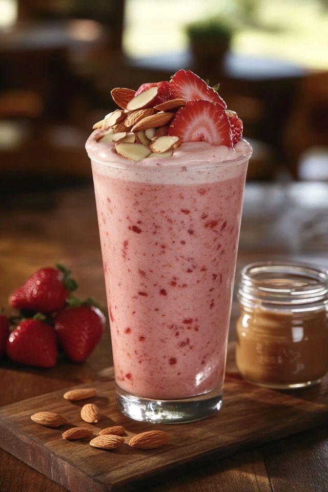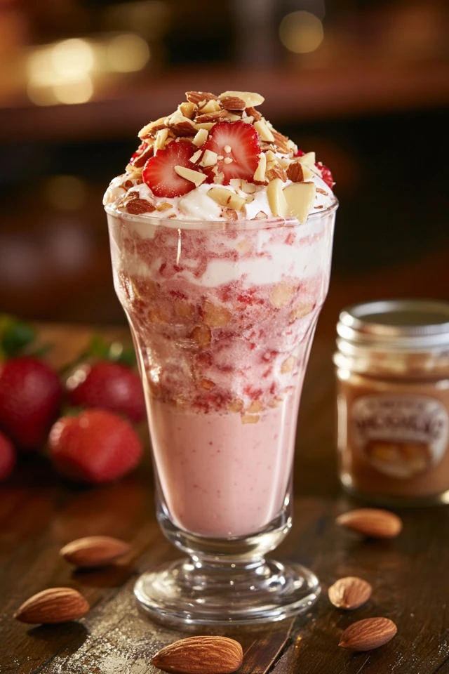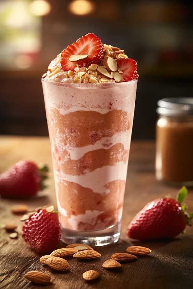 What makes this shake so special is its perfect balance of flavors and textures. The strawberries bring a bright, fruity sweetness, while almond butter adds a smooth, nutty richness that feels luxurious. Combined with a creamy base and a boost of protein, this shake becomes a refreshing, energizing, and versatile drink for any occasion.