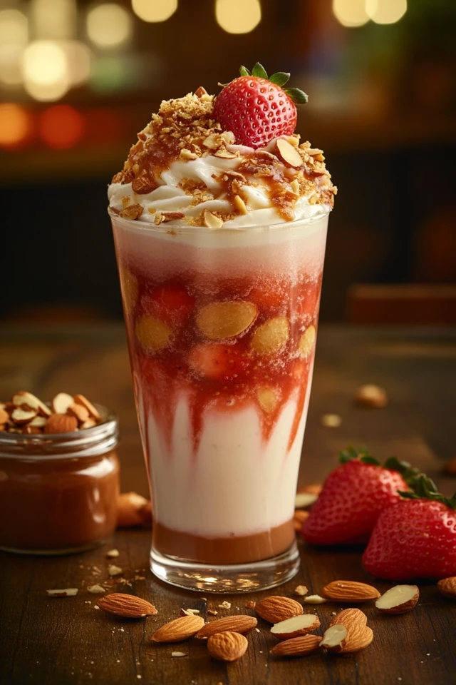The best part? It’s endlessly customizable. From experimenting with chocolate and spices to adding berries or citrus flavors, the possibilities are as exciting as the drink itself. So, grab some fresh strawberries, creamy almond butter, and your favorite protein powder, and whip up this nutty, fruity, and protein-packed treat. Cheers to vibrant sips and delicious nutrition!