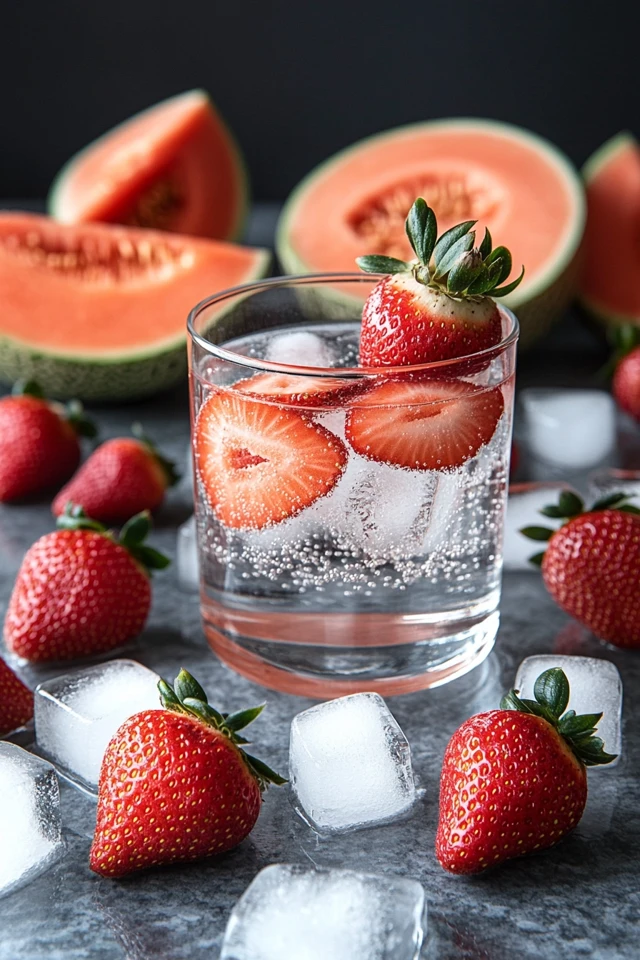 Picture this: You’re sitting by the pool with a tall glass of this fruity water, condensation dripping down the side of the glass. The sun is shining, and every sip feels like a burst of summer in your mouth. The strawberries provide a bold, juicy sweetness, while the cantaloupe adds a smooth, honey-like undertone that balances the drink perfectly.