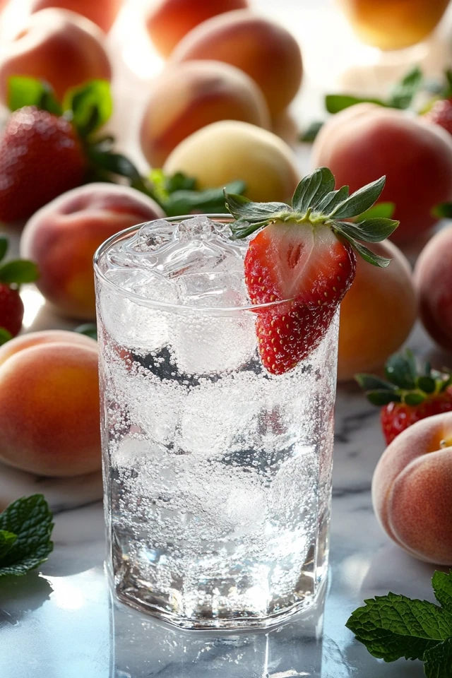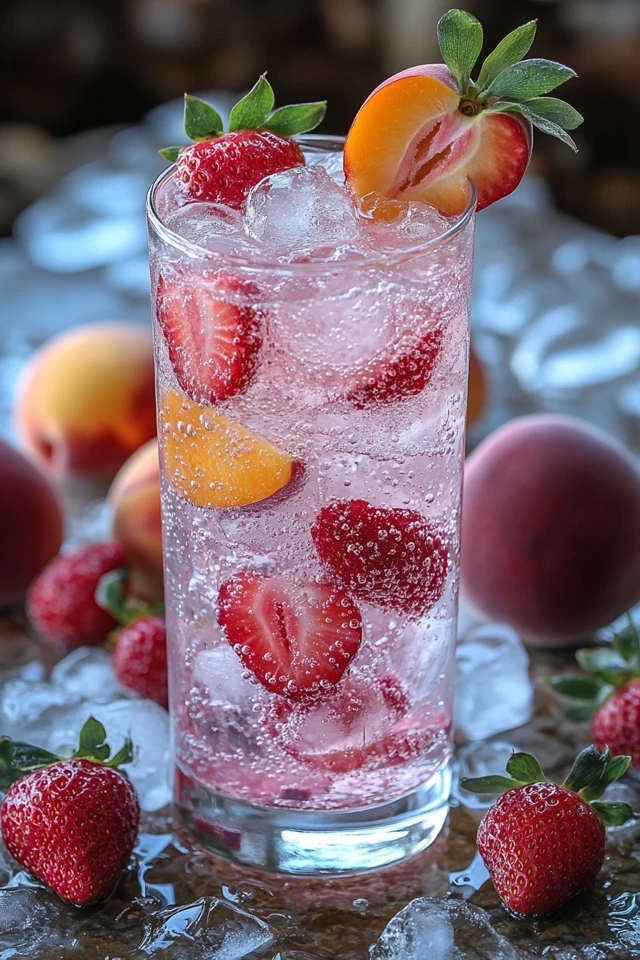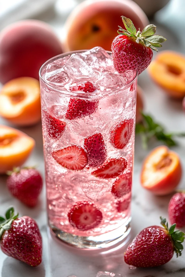 Now imagine serving this drink at a brunch or picnic. A glass pitcher filled with ruby-red strawberry slices and golden peach wedges is not just a refreshing drink—it’s a showstopper. Guests pour themselves a glass, marveling at the vibrant colors and refreshing flavors.