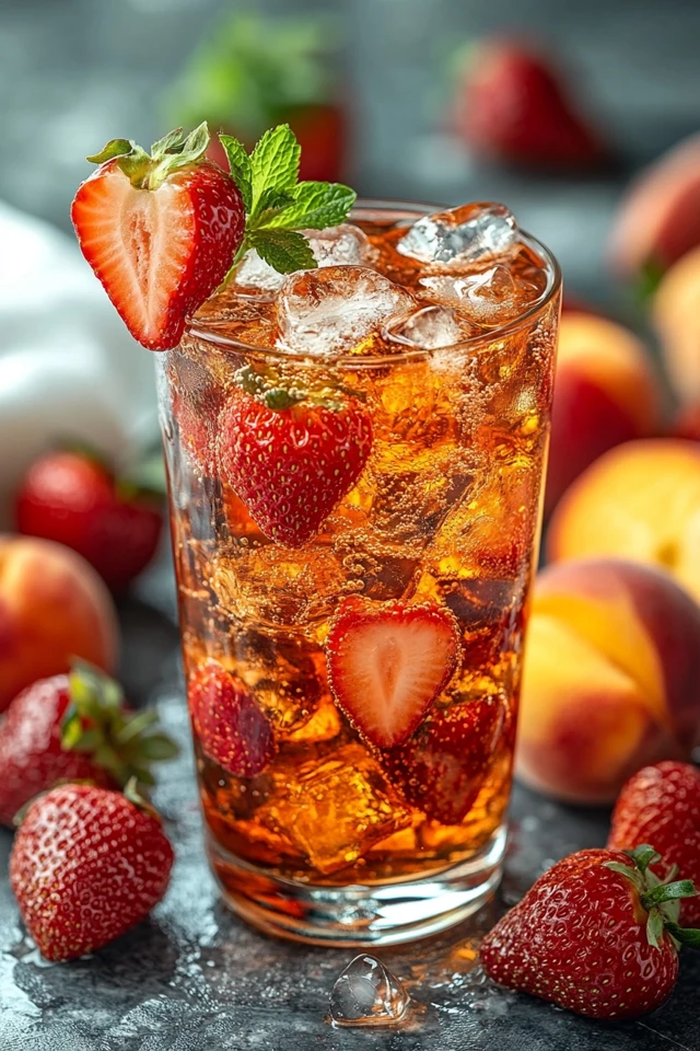 Together, strawberries and peaches create a drink that’s perfectly balanced—sweet, fruity, and incredibly refreshing. Their natural flavors blend seamlessly, ensuring that every sip is as enjoyable as the last.
