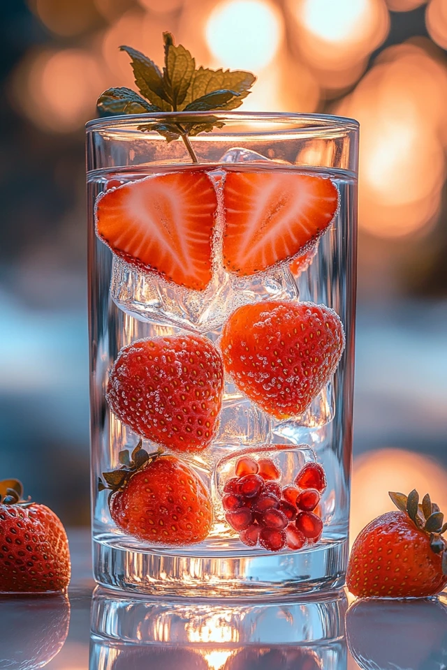 Picture this: It’s a sunny day, and you’re enjoying a chilled glass of this infusion. The juicy strawberries add a burst of natural sweetness, while the tart pomegranate seeds offer a refreshing zing that keeps you coming back for more.